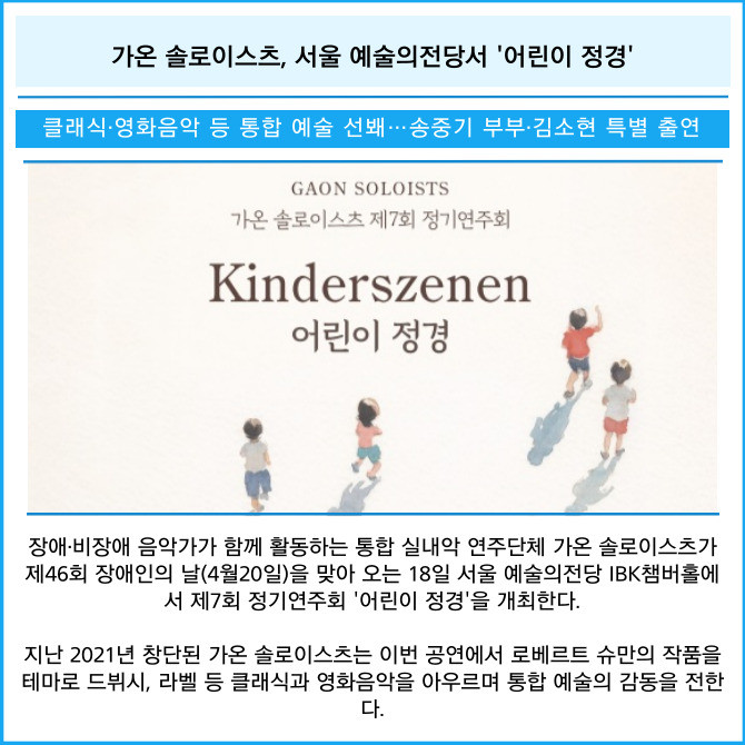 [카드] 가온 솔로이스츠, 서울 예술의전당서 '어린이 정경'