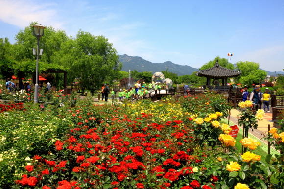 [우리모두뉴스] 곡성 섬진강기차마을의 장미공원에 올해 처음 장미꽃이 피었...