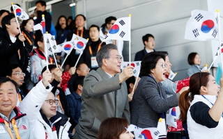 [우리모두뉴스 : 포토] 문재인 대통령이 남한과 북한 선수들이 나오는 크로...