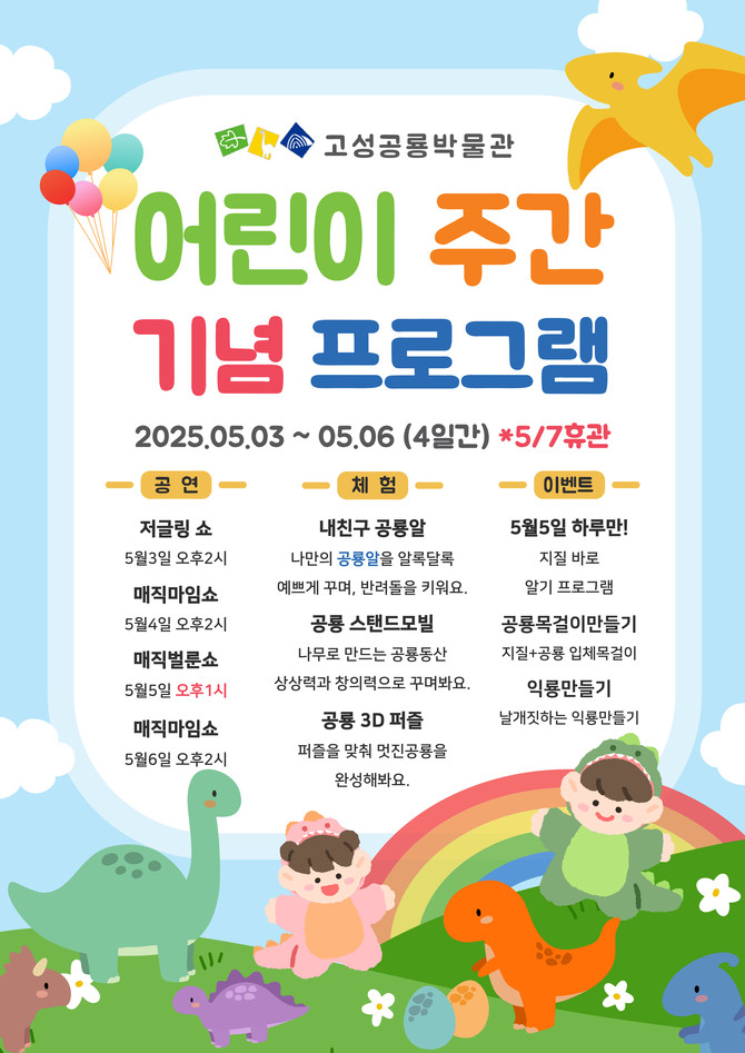 고성군 "제103회 어린이날은 고성공룡박물관으로"
