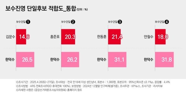 한덕수, 보수진영 단일후보 우세...본선 경쟁력은 미지수