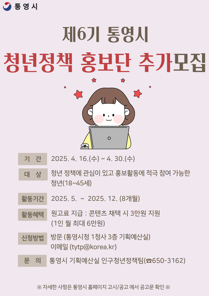 통영시, 제6기 청년정책홍보단 추가 모집