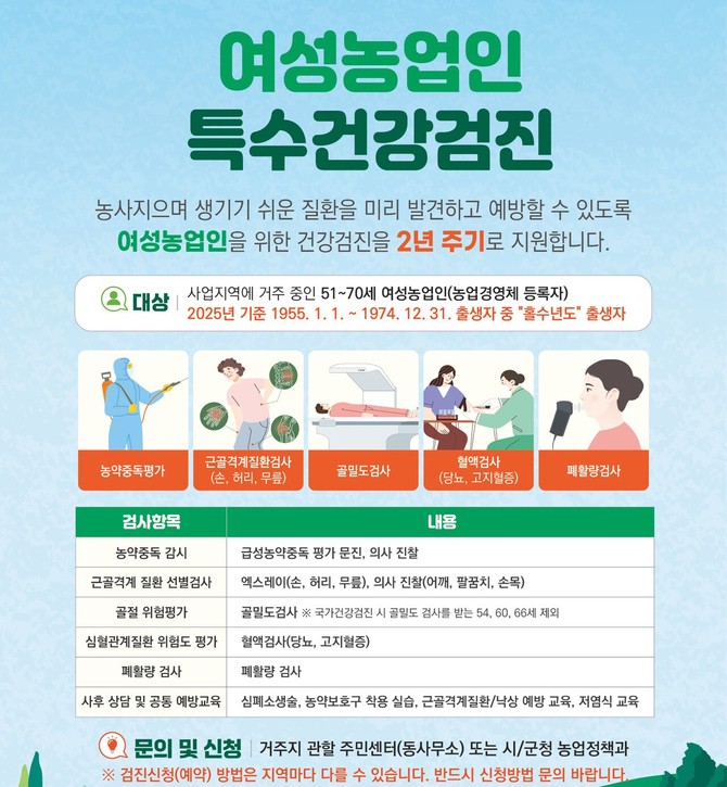 진주시, 여성농업인 특수건강검진 지원…검진비 90% 지원