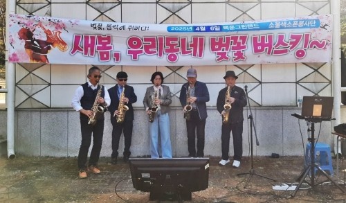 광양제철소 소울 색소폰 나눔봉사단, 벚꽃 버스킹 공연 열어
