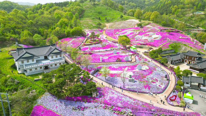 제6회 산청 생초국제조각공원 꽃잔디 축제…꽃잔디 수놓은 생초면