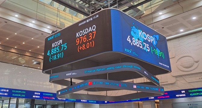 코스피, 기간 매도에 13거래일 만에 하락 '4900선 반납'…코스닥 0.83%↑