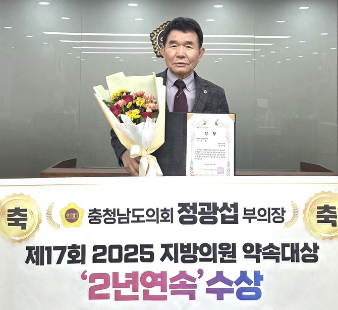 정광섭 충남도의회 부의장, 매니페스토 '2연패'…조례로 증명한 실천 정치