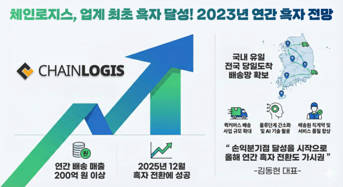 체인로지스, 월간 흑자 전환…당일 배송 업계 '첫 사례'