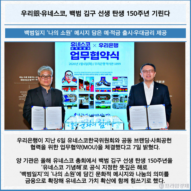[카드] 우리銀·유네스코, 백범 김구 선생 탄생 150주년 기린다