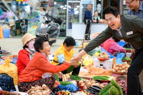 [포토] 노관규 순천시장, 순천 아랫장 방문해 상인들과 소통·위로