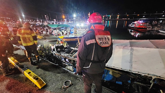 통영해경 '잠든 새벽의 불청객'…'계류어선 화재 진화'
