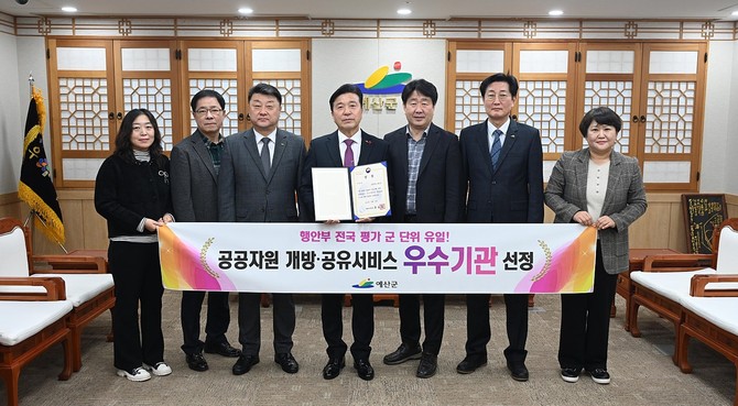 예산군, 공공자원 개방 성과 '전국 최고'…군 단위 유일 장관상 쾌거