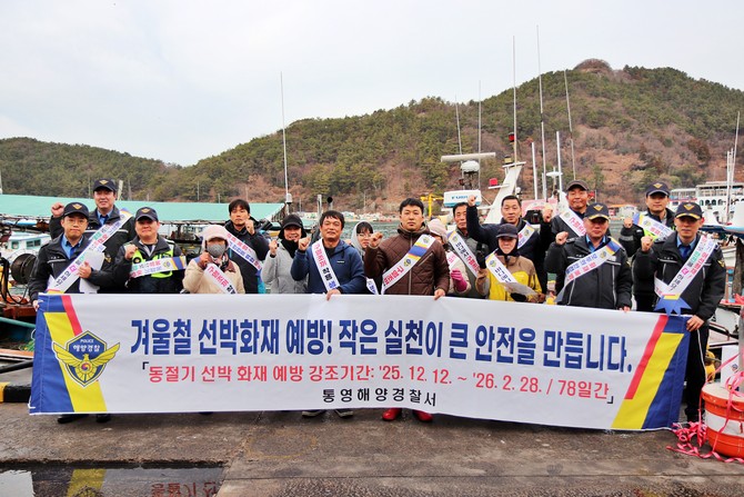 통영해경 '겨울바다 불청객 화재 예방' 캠페인 실시