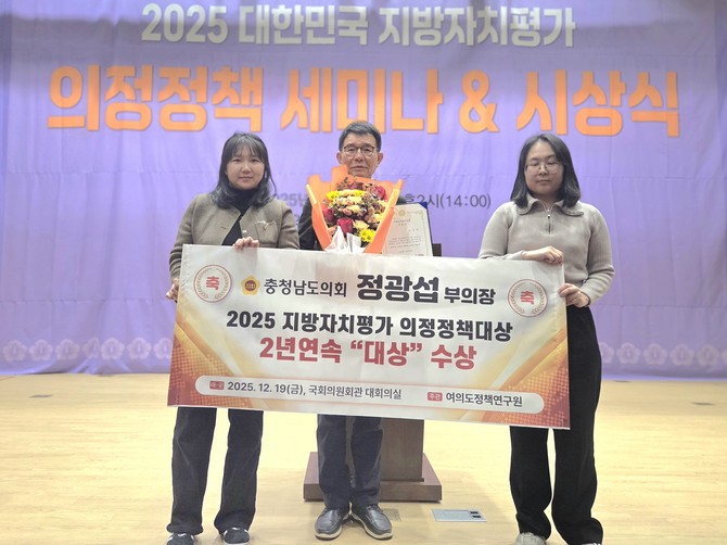 충남도의회 정광섭 부의장, 지방자치평가 의정정책대상 '2년 연속 대상' 수상