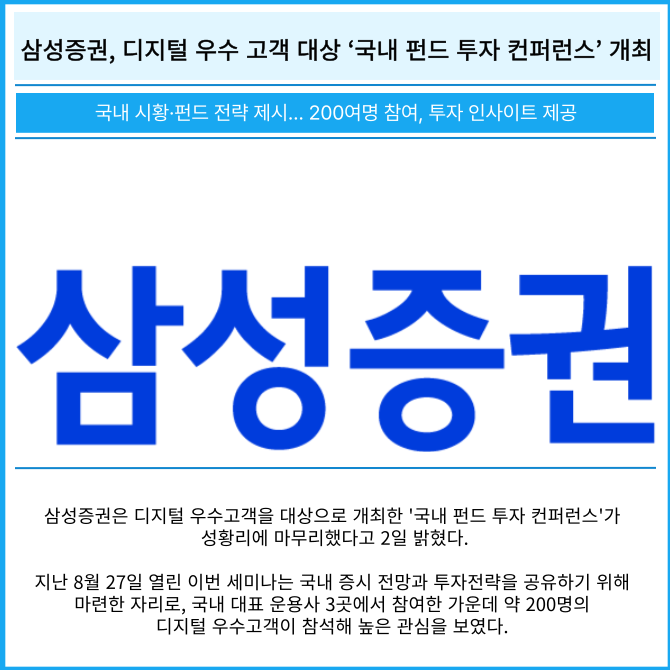 [카드] 삼성증권, 디지털 우수 고객 대상 ‘국내 펀드 투자 컨퍼런스’ 개최