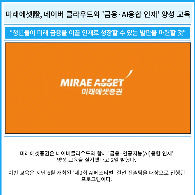 [카드] 미래에셋證, 네이버 클라우드와 '금융·AI 융합 인재' 양성 교육