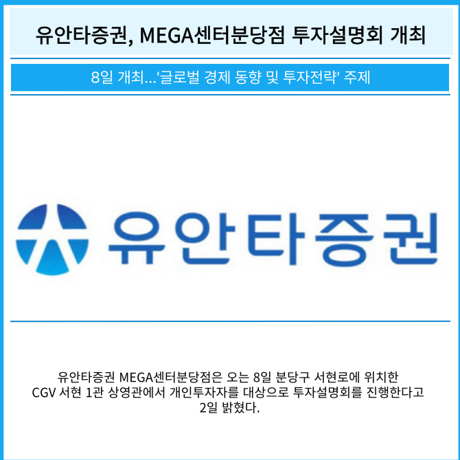 [카드] 유안타증권, MEGA센터분당점 투자설명회 개최