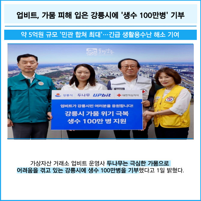 [카드] 업비트, 가뭄 피해 입은 강릉시에 '생수 100만병' 기부
