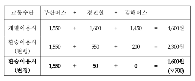 부산시, 김해·양산 대중교통 환승요금 전면 무료화…시민 교통비 연간 55억원 절감
