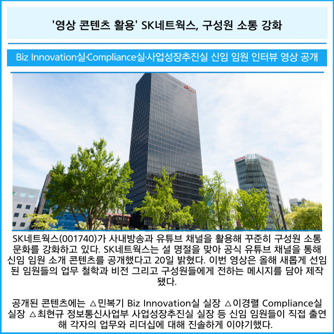 [카드] '영상 콘텐츠 활용' SK네트웍스, 구성원 소통 강화