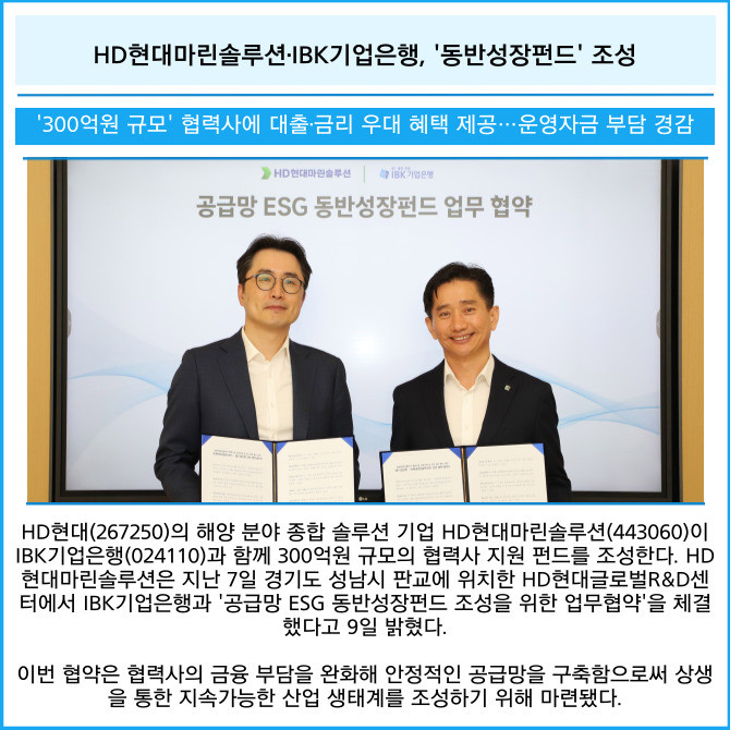 [카드] HD현대마린솔루션·IBK기업은행, '동반성장펀드' 조성