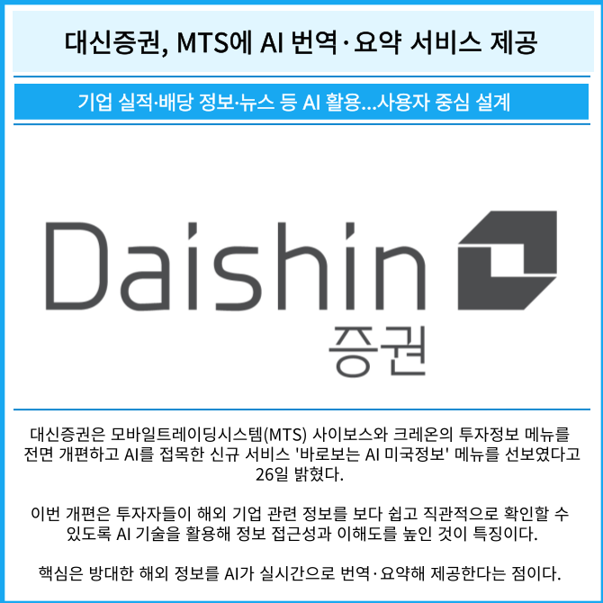 [카드] 대신증권, MTS에 AI 번역·요약 서비스 제공