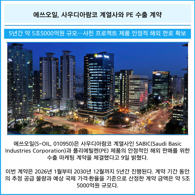 [카드] 에쓰오일, 사우디아람코 계열사와 PE 수출 계약