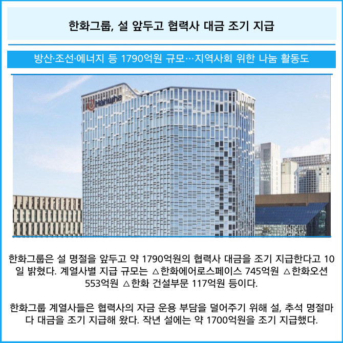 [카드] 한화그룹, 설 앞두고 협력사 대금 조기 지급