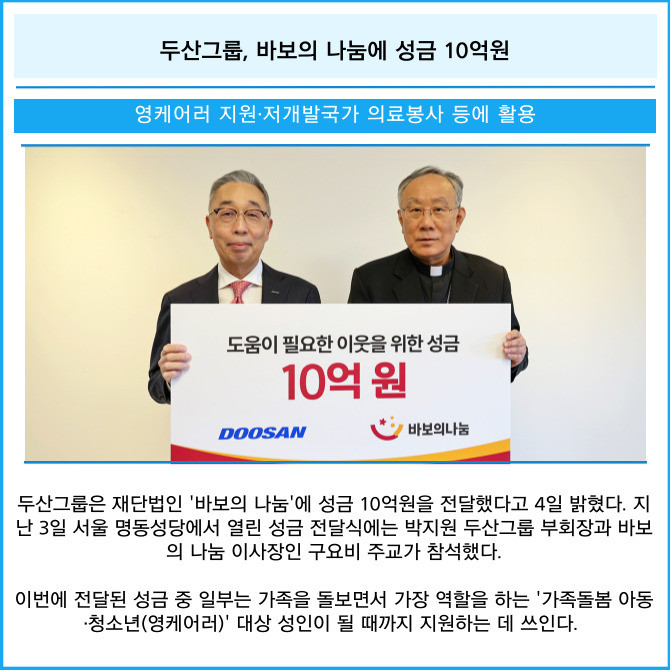 [카드] 두산그룹, 바보의 나눔에 성금 10억원