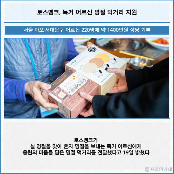 [카드] 토스뱅크, 독거 어르신 명절 먹거리 지원