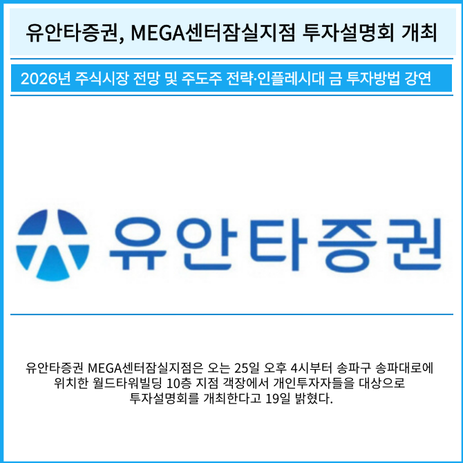 [카드] 유안타증권, MEGA센터잠실지점 투자설명회 개최