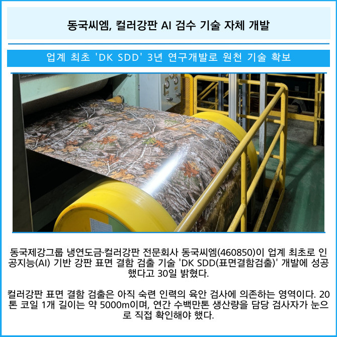 [카드] 동국씨엠, 컬러강판 AI 검수 기술 자체 개발