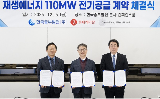 "탄소중립 신(新)연대 출범…한국중부발전-롯데케미칼-써밋 110MW PPA 체결"