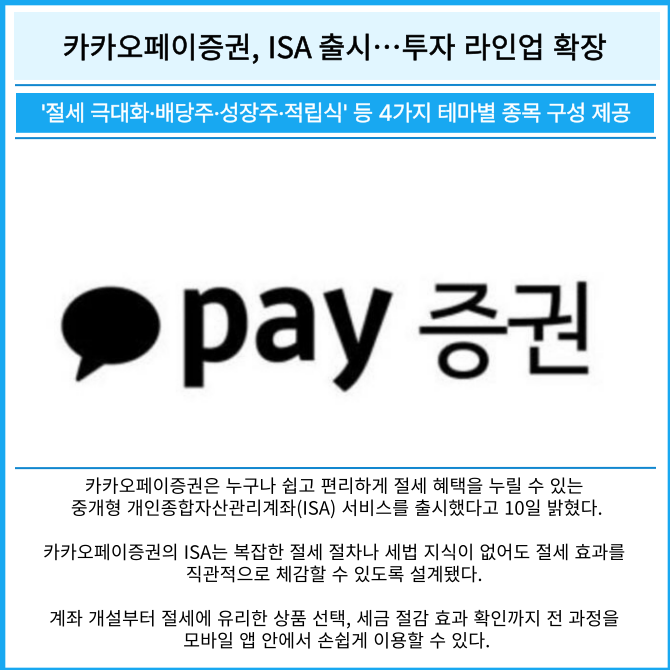 [카드] 카카오페이증권, ISA 출시…투자 라인업 확장