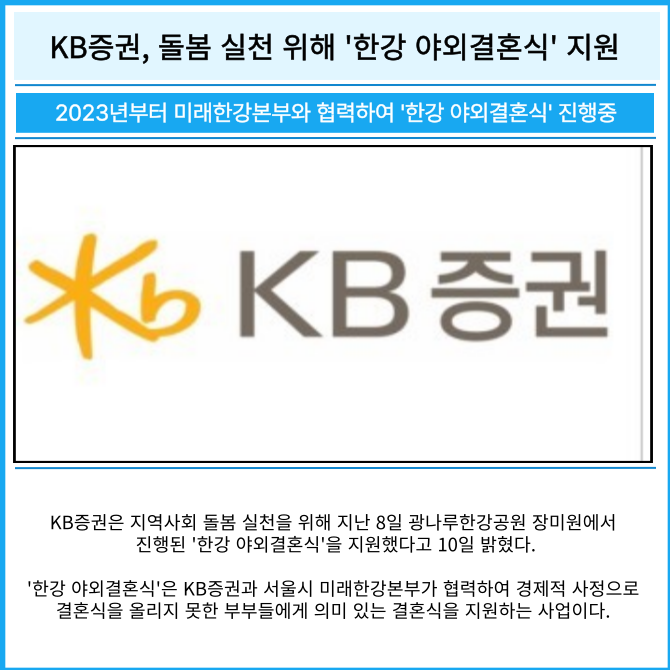 [카드] KB증권, 돌봄 실천 위해 '한강 야외결혼식' 지원