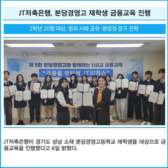 [카드] JT저축은행, 분당경영고 재학생 금융교육 진행