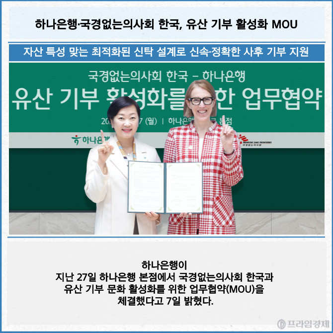 [카드] 하나은행·국경없는의사회 한국, 유산 기부 활성화 MOU