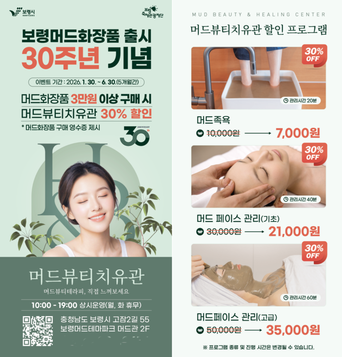 보령머드 30년, 체험은 더 과감하게…머드뷰티치유관 '30% 파격 할인'
