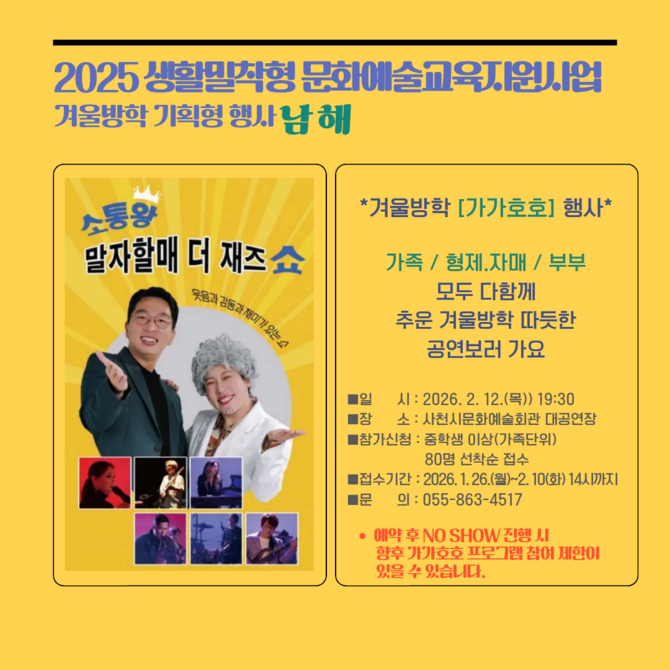 [남해군 소식] 남해관광문화재단 '소통왕 말자할매 더 재즈 쇼' 관람객 모집