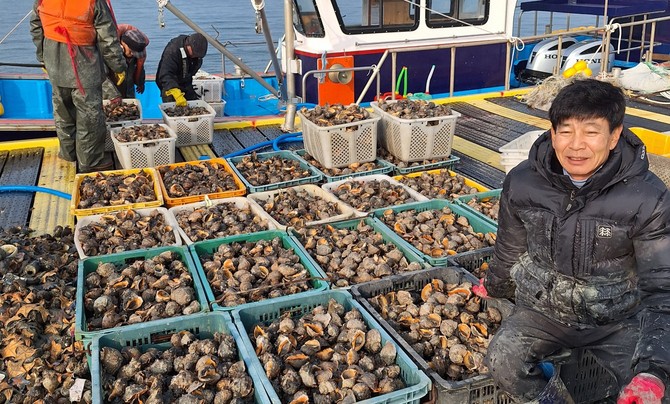 겨울 바다의 반전…홍성 남당항, 참소라 대풍에 어민들 '웃음꽃'