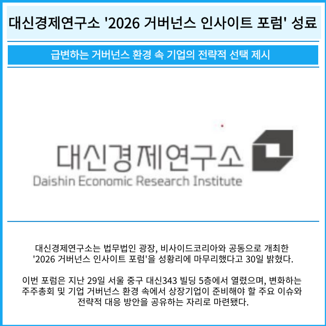 [카드] 대신경제연구소 '2026 거버넌스 인사이트 포럼' 성료
