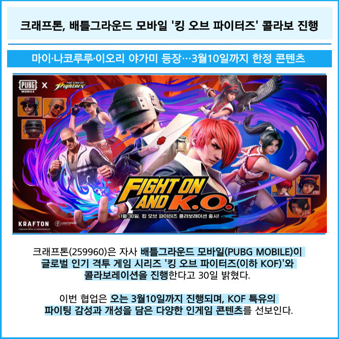 [카드] 크래프톤, 배틀그라운드 모바일 '킹 오브 파이터즈' 콜라보 진행