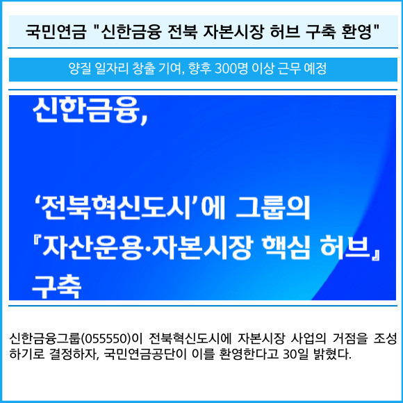 [카드] 국민연금 "신한금융 전북 자본시장 허브 구축 환영"
