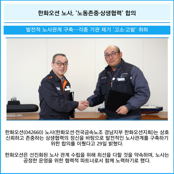 [카드] 한화오션 노사, '노동존중·상생협력' 합의