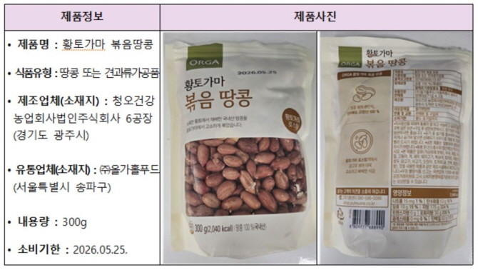 올가홀푸드 판매 볶음땅콩서 아플라톡신 초과 검출