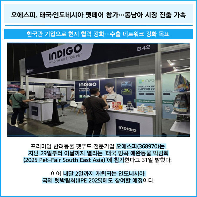 [카드] 오에스피, 태국·인도네시아 펫페어 참가…동남아 시장 진출 가속