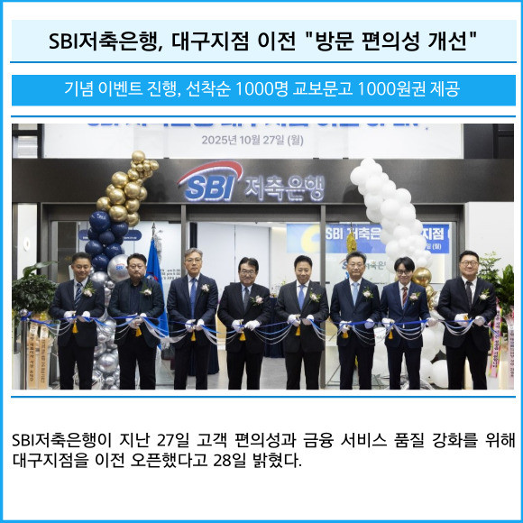 [카드] SBI저축은행, 대구지점 이전 "방문 편의성 개선"