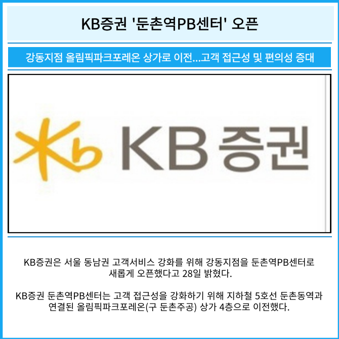 [카드] KB증권 '둔촌역PB센터' 오픈
