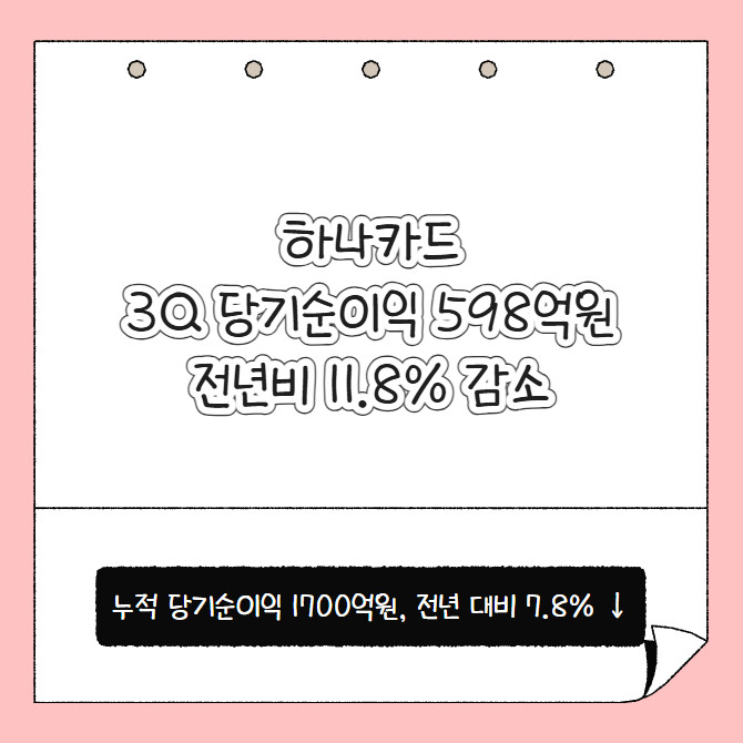 [카드] 하나카드 3Q 당기순이익 598억원…전년비 11.8% 감소