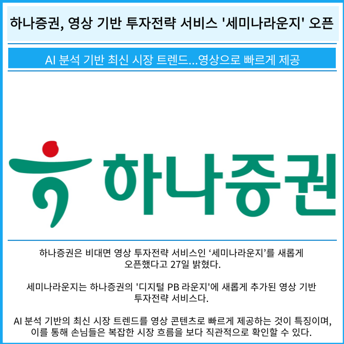 [카드] 하나증권, 영상 기반 투자전략 서비스 '세미나라운지' 오픈